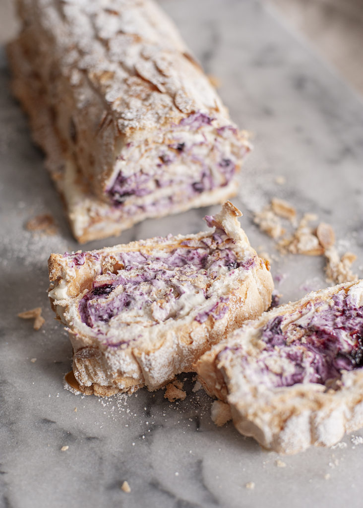 Marängrulltårta med hemkokt blåbärssylt