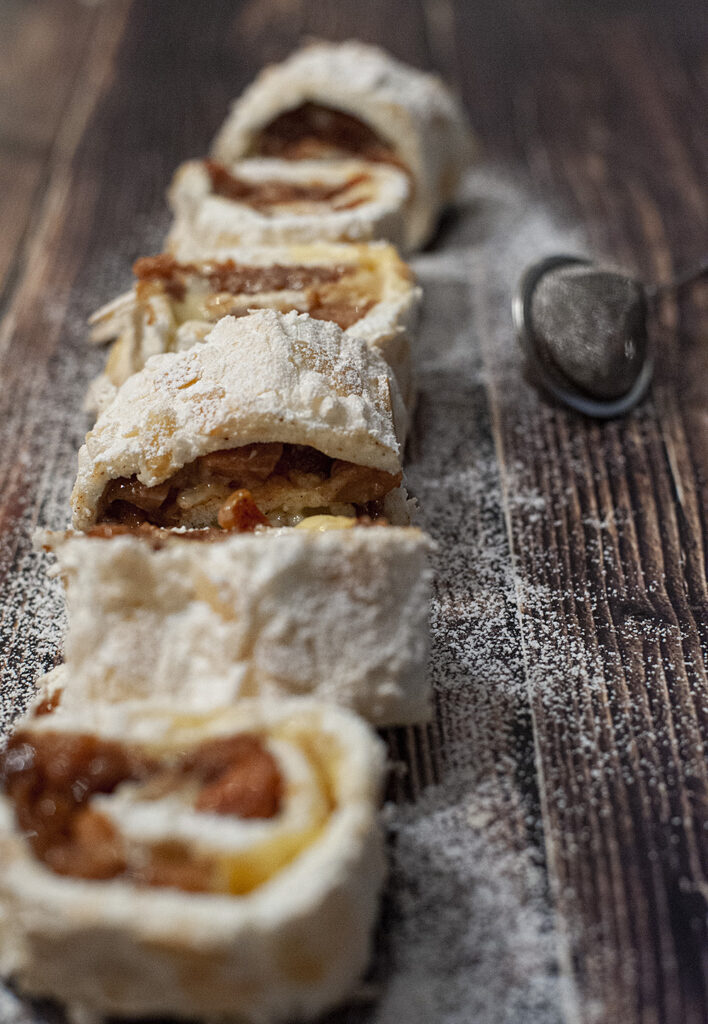 Marängrulltårta med äppelkompott