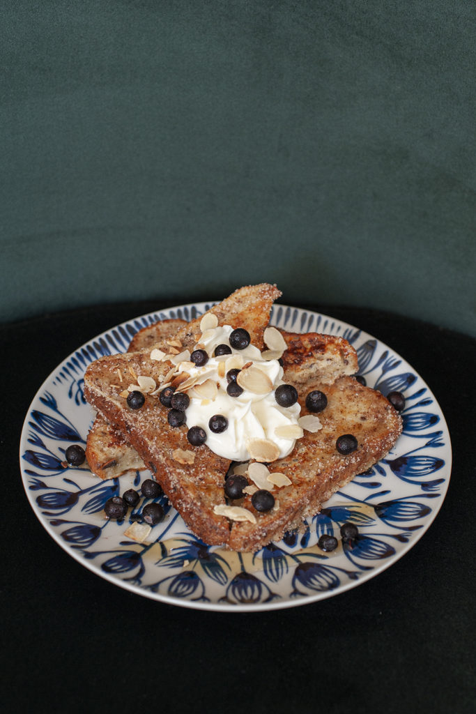 Fattiga riddare med färskostkräm, blåbär och sirap