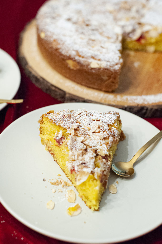 Saffranskaka med mandel och hallon