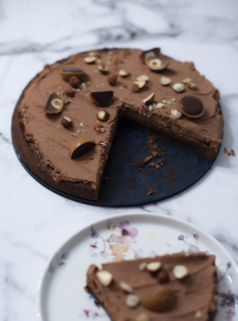 Brynt smörkladdkaka med rostade hasselnötter och nougattäcke
