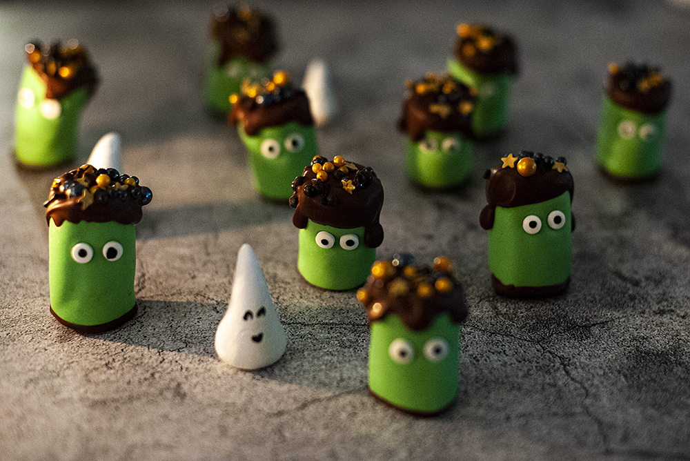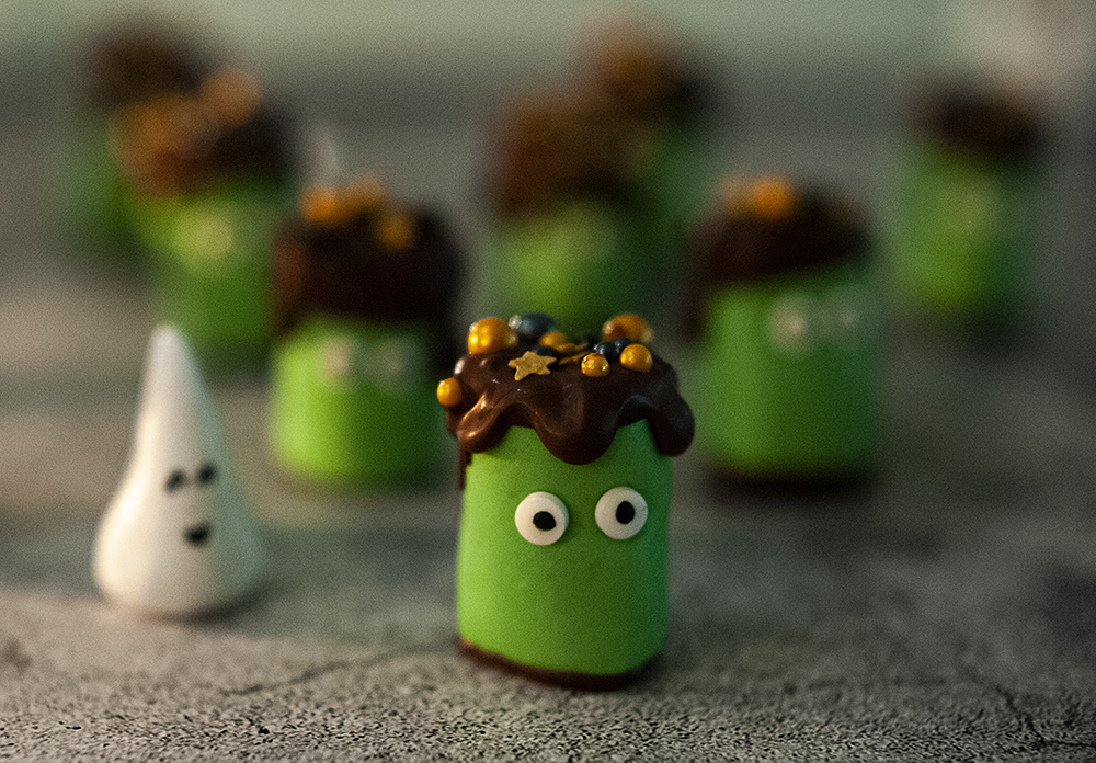 Hur kan man dessutom inte bli taggad när man ser de här urgulliga små Frankensteinsen som jag gjorde igår? Dom blev ju verkligen hur bra som helst om jag får säga det själv. Med smak av klassiska dammsugare men med utseende som små monster. Jag har sagt det förut men jag säger det igen. Jag älskar att baka till Halloween! 🤡