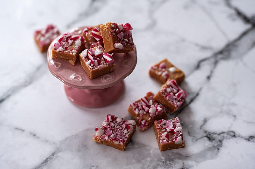 - Toppa med de krossade polkagrisarna.