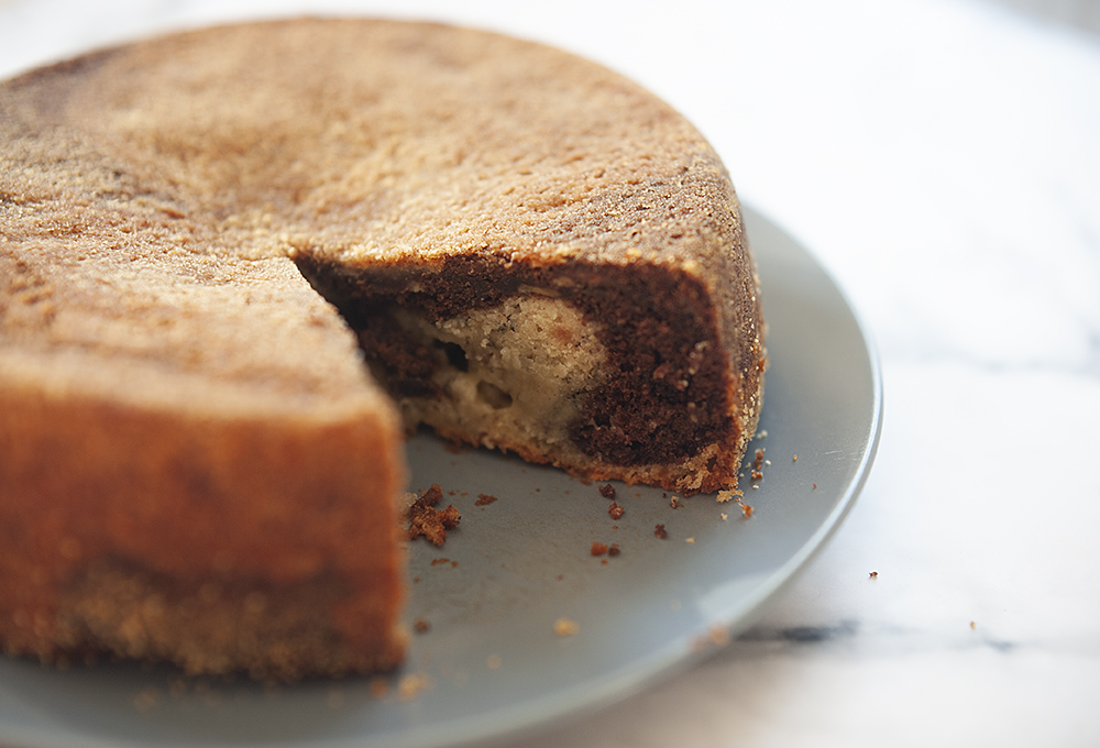 - Varva mellan chokladsmeten och den vanliga smeten när du häller smeten i formen.