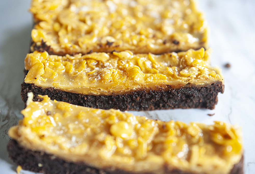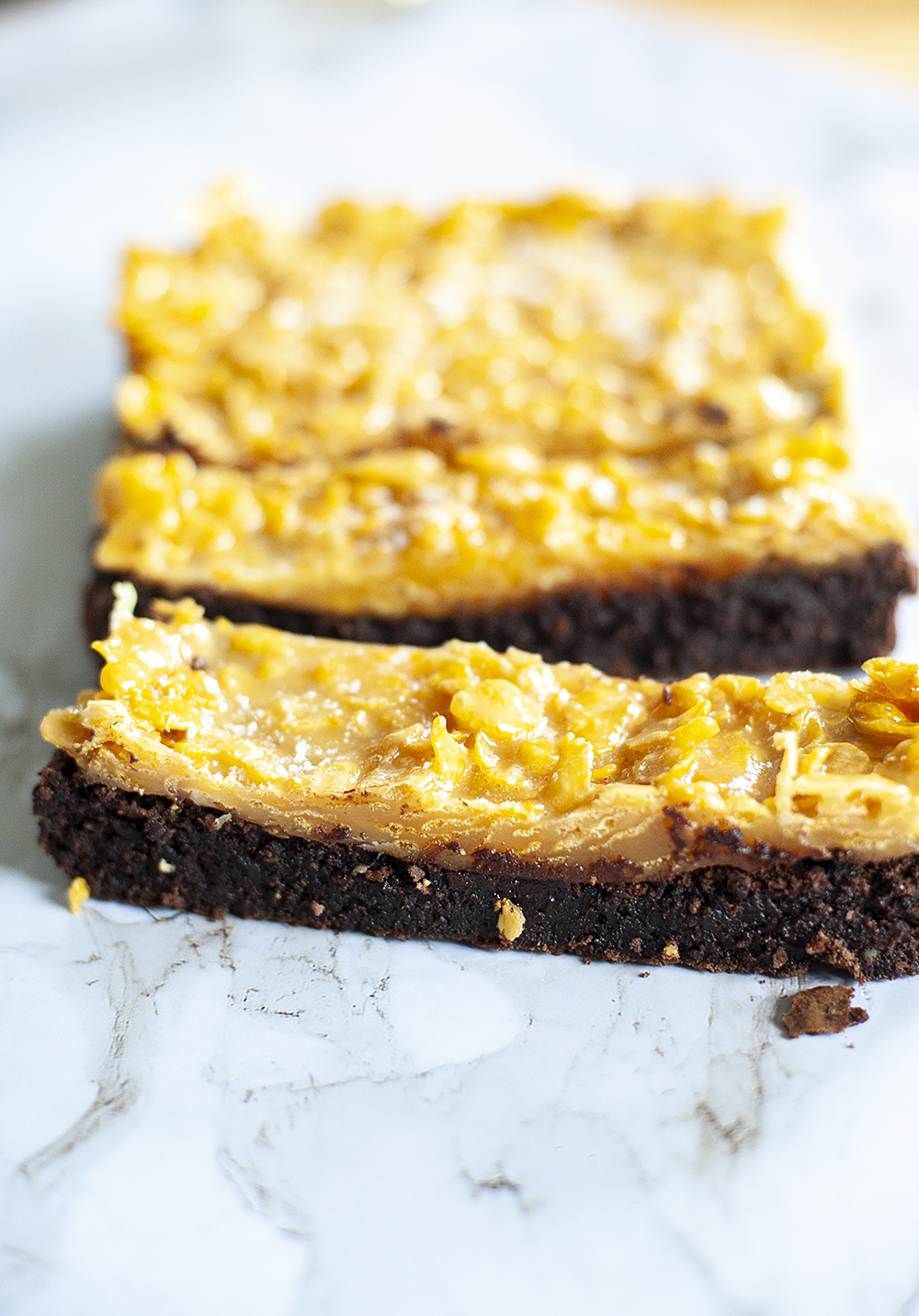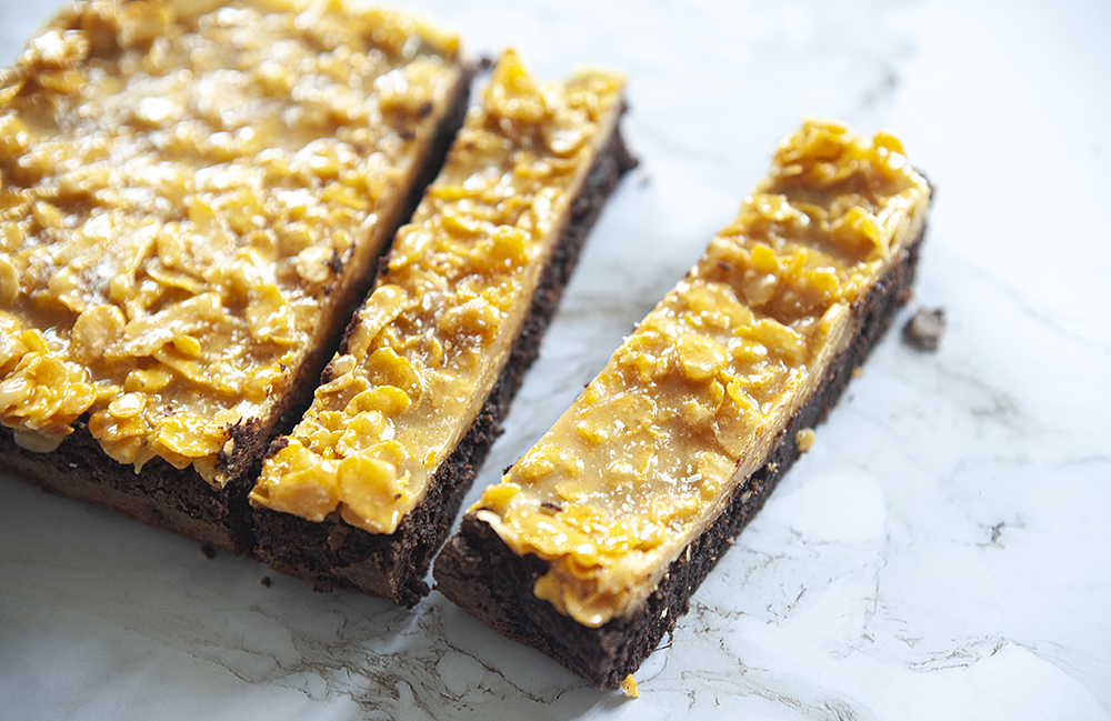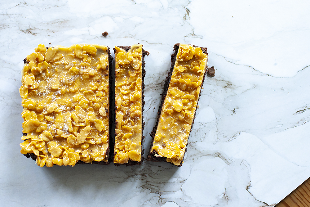 Idag spinner jag vidare på mina smörkola- och kornflakeskakor som ni fick receptet på för några veckor sedan. Jag kan liksom inte sluta så därför kommer nu denna! Glutenfri brownie med smörkola- och cornflakestopping🤤 Japp, det är precis så gott som det låter. Chokladig brownie med smörkola och crunchet från cornflaksen. En hitt hos både vuxna och barn vill jag lova!😁
